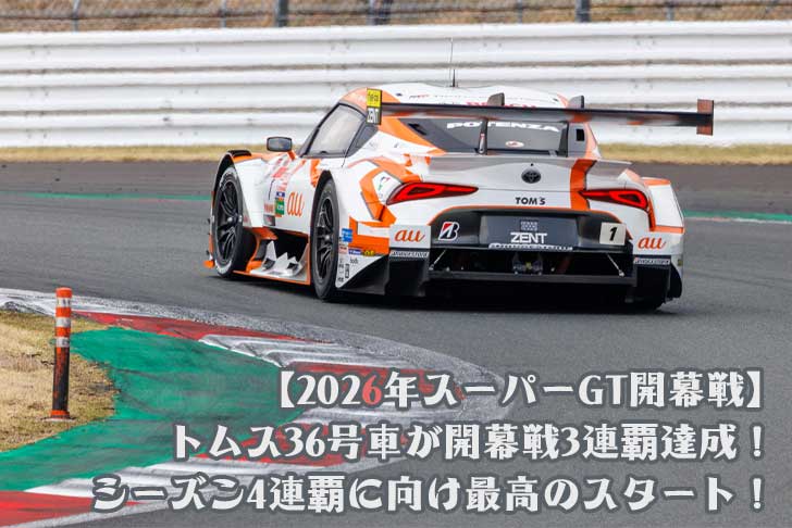 毎年荒れる開幕戦だが、今年は大きなアクシデントがなくセーフティカーの導入もなかったため、結局トムス36号車は2位セルモに20秒近い大差をつけてフィニッシュ。史上初のシーズン4連覇に向けて最高のスタートを切った。